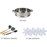 - 【16PCS Pots and Pans Set Non Stick】16PCS Pots and Pans Set Non Stick with a 9-inch/11 inch fryer, a11 inch/4.5QT covered fryer, a 4.3 QT covered steamer, a 1.5 QT covered stewer, and a silicone spatula and pliersand 4 reusable pot protectors perfect for your daily cooking.