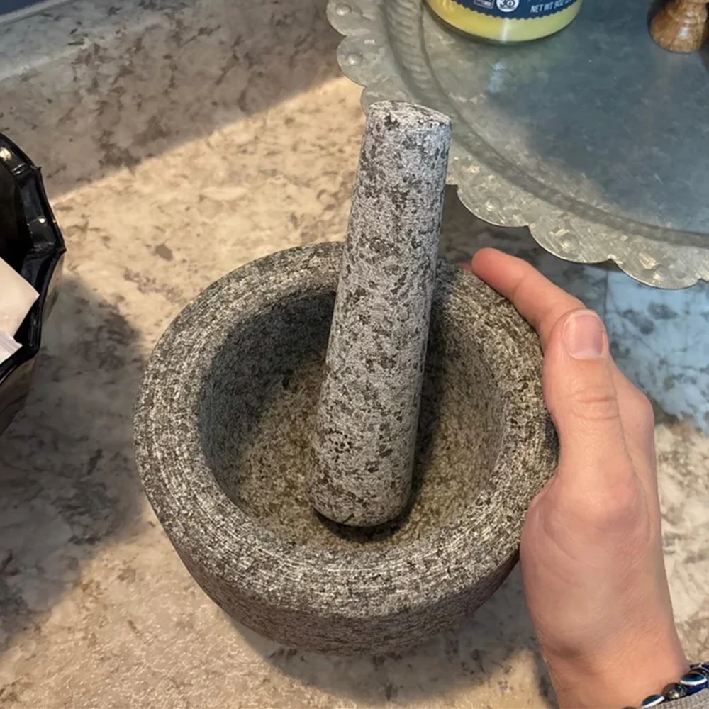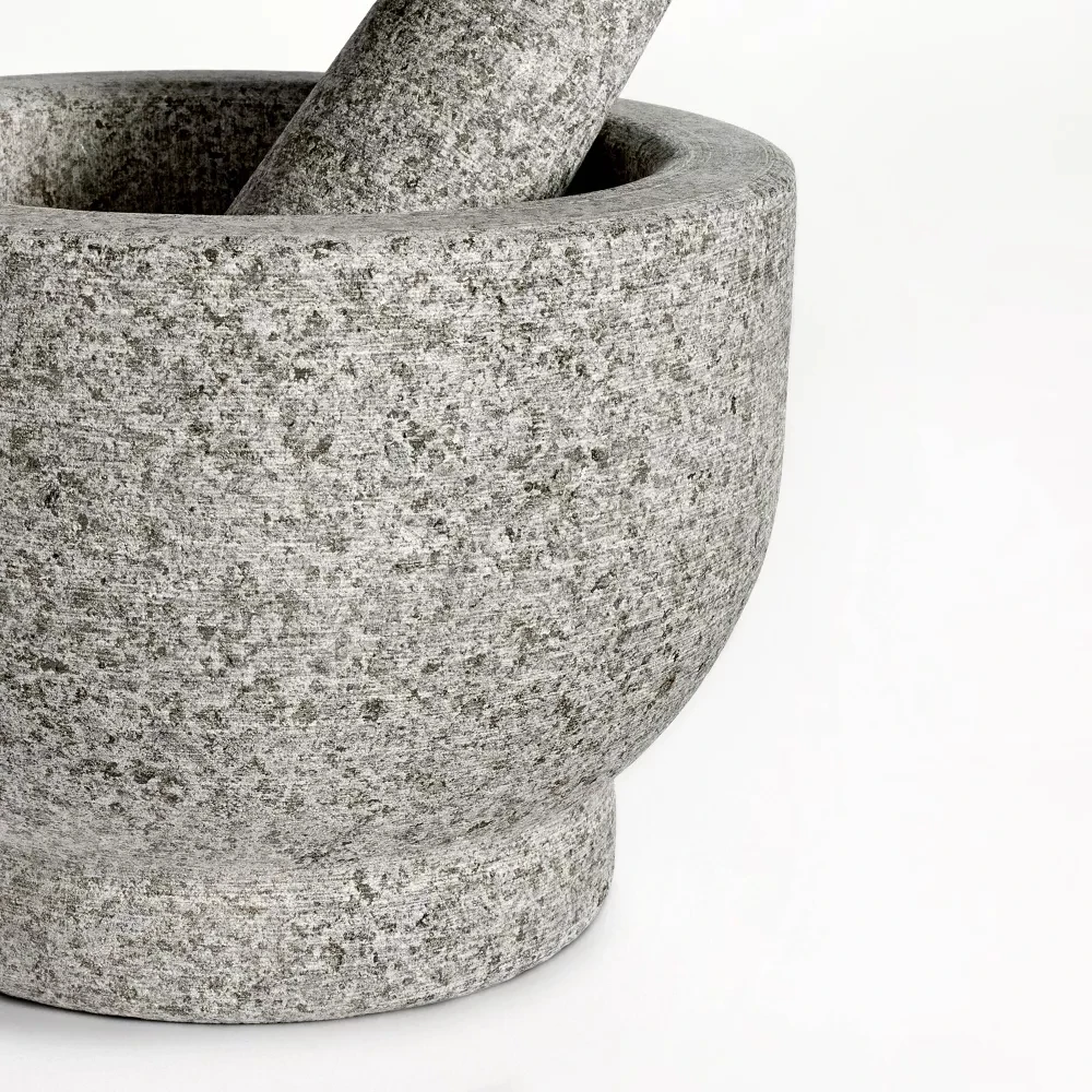 Grind spices and herbs like a pro with this Granite Mortar & Pestle. Made from granite in natural hues, the mortar & pestles' durable construction is perfect for grinding, making it easy to whip up dips, sauces and spice mixes. The mortar & pestle should be seasoned prior to first use and hand washed to clean.