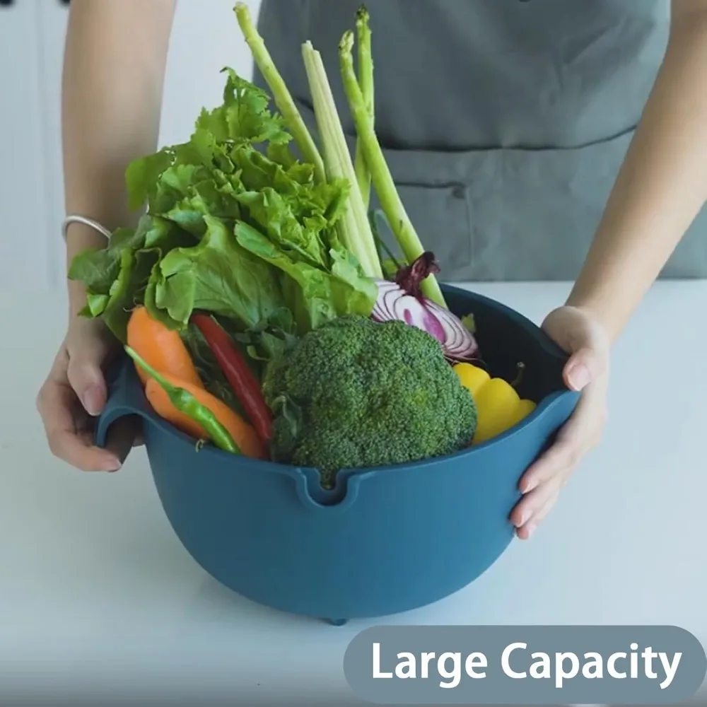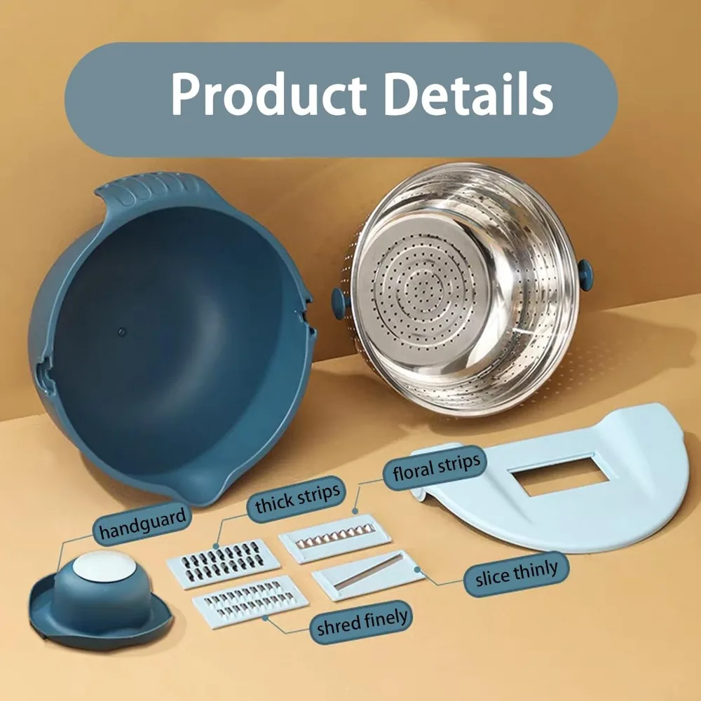 - MULTIFUNCTIONAL KITCHEN GADGETS: 4-in-1 Colander Set includes: colander, mixing bowl, lid, hand guard and 4 slicing tools, suitable for washing and cutting vegetables and fruits, panning rice, straining pasta, storing food, it’s a must-have tool for the kitchen