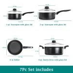 7 Piece Non Stick Aluminium Cookware Set, Black