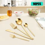 90pcs/Set Tableware Stainless Steel Flatware Utensil Kitchen Spoon Fork Cutlery