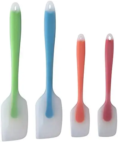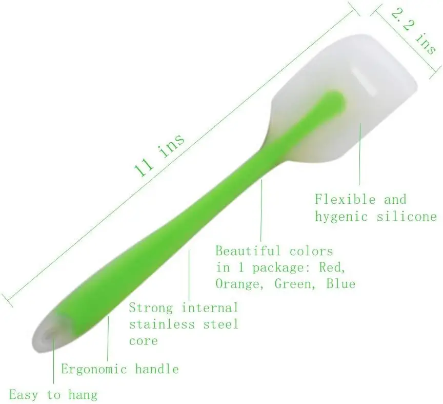 4. •VERSATILE, BEAUTIFUL COLORS & FASHIONABLE DESIGN: Can be used for baking, flipping, sauteing, and cooking.  They will protect your pots and jars perfectly.  Great for scraping your bowls or jars.  Give them as a gift, and people will be impressed.  Pack of 4: 2 large (Red, Orange.  Length: 11” Width: 2.2”), 2 small (Green, Blue.  Length: 8.3” Width: 1.6”)