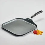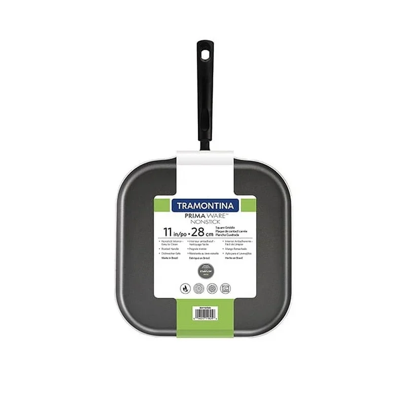 PrimaWare 11-Inch Nonstick Square Griddle, Steel Gray. Patterned gray interior nonstick coating. Riveted, stay-cool handle. Compatible with electric, gas and ceramic glass cook-tops. Dishwasher-safe. Model# 80119/569DS