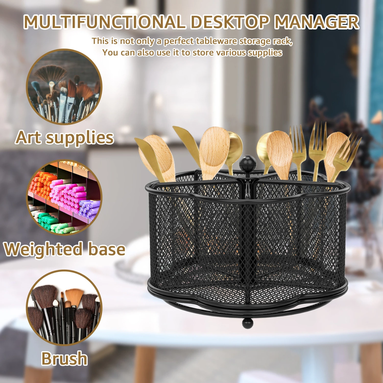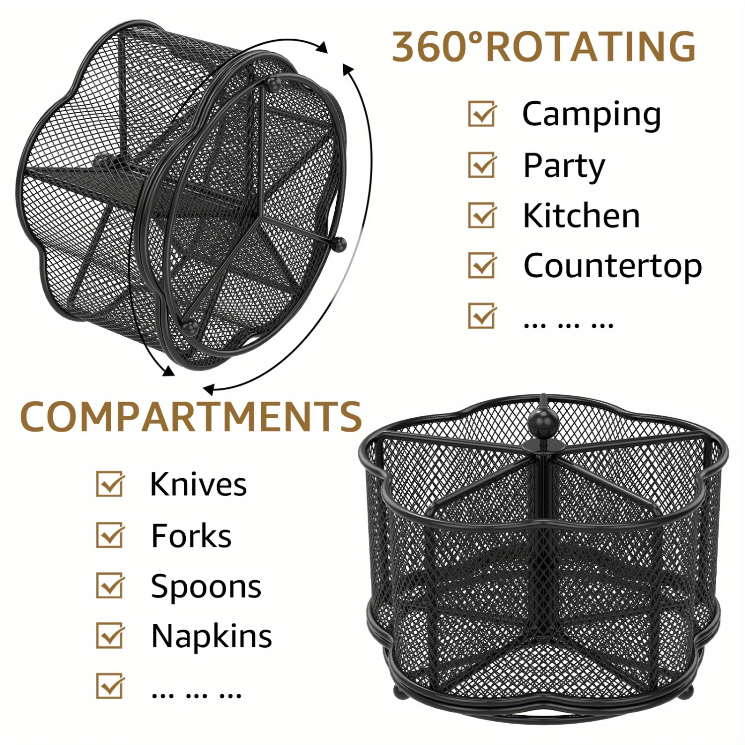 1. Keep your kitchen, bathroom, or party supplies organized with our Rotating 5-Compartment Utensil Holder. This versatile storage solution is perfect for keeping all your essentials within reach.